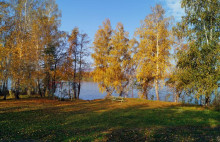 Окрасились золотом кроны берёз.