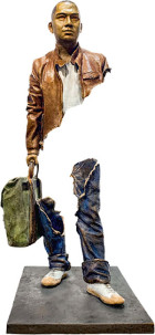 значительные части которых буквально вырваны. Двухметровая скульптура из бронзы кажется невесомой. Большинство работ представляют собой стоящего человека с сумкой, кейсом или чемоданом. Самая впечатляющая часть работ — отсутствующая у них средняя часть.